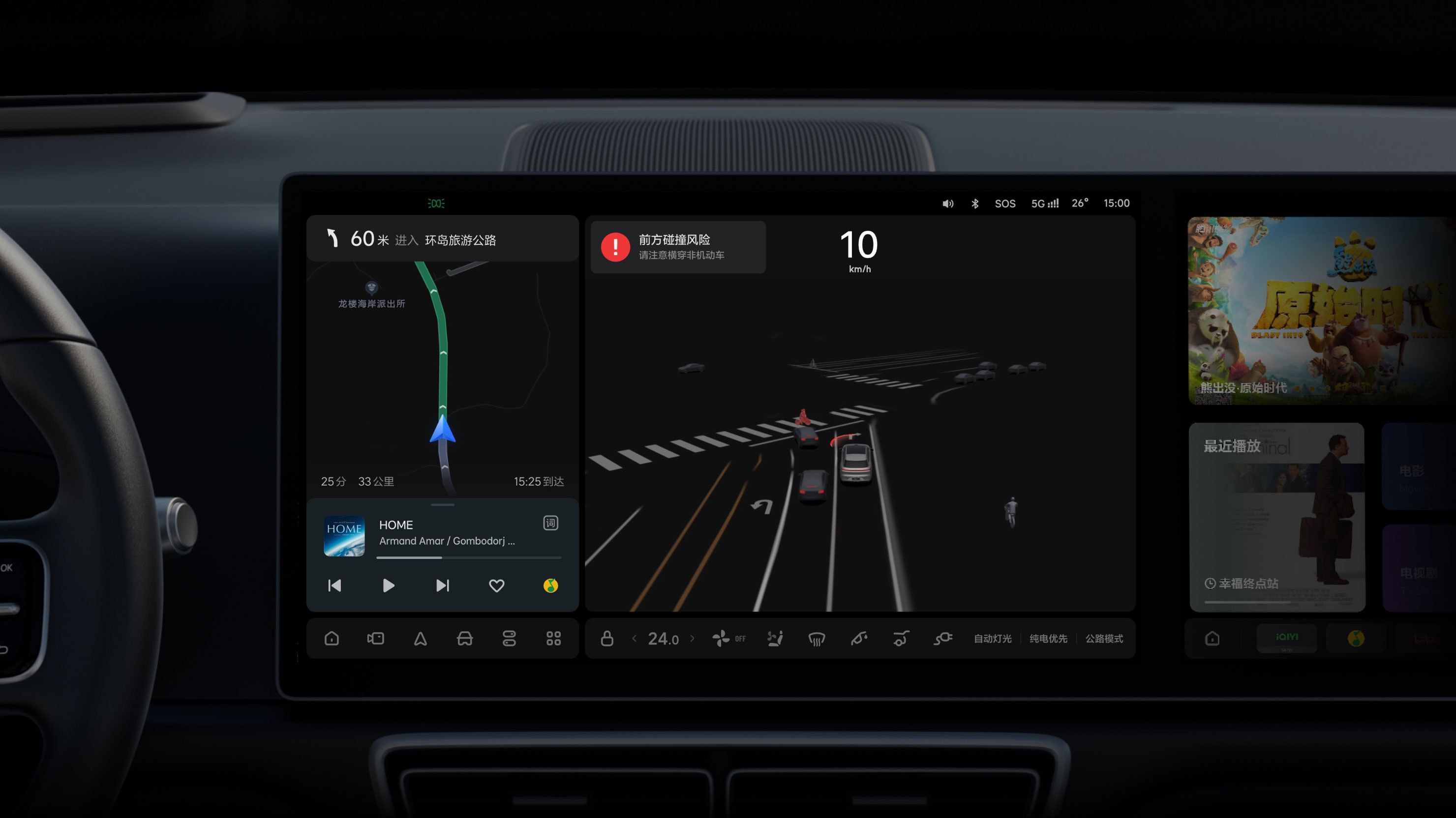 Adopting Qualcomm Snapdragon 8295P chip, four-screen 3D spatial interaction system (HUD, safe driving interaction screen, and 15.7-inch 3K dual screen).